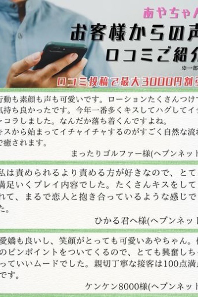 さぁ、みなさん!あやちゃんとの時間は、あなたの心に残る特別な体験となることでしょう!彼女の笑顔と共に、夢のようなひとときをお楽しみください!!